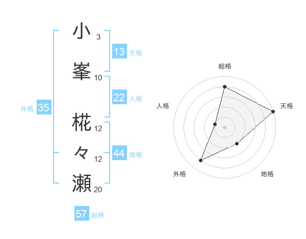 小峯 椛々瀬さんを姓名の画数から五運を鑑定