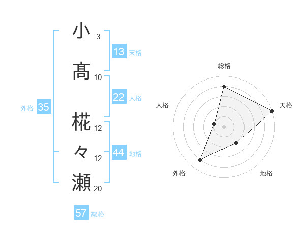 小髙 椛々瀬さんの天格は13画の5点!