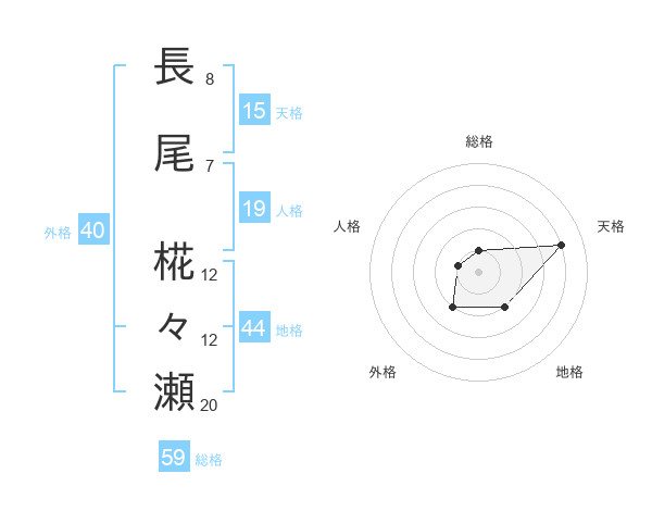 長尾 椛々瀬さんの総格は59画の1点!