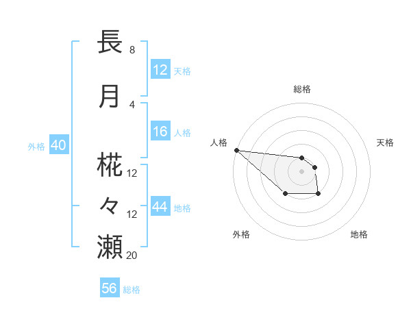 長月 椛々瀬さんの天格は12画の1点!