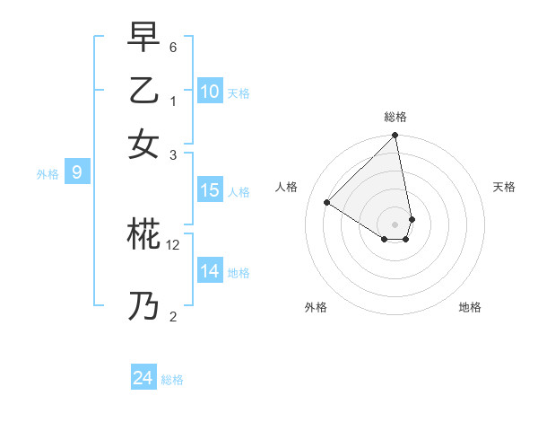 早乙女 椛乃さんの総格は24画の5点!