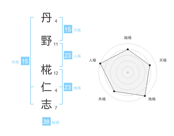 丹野 椛仁志さんの総格は38画の4点