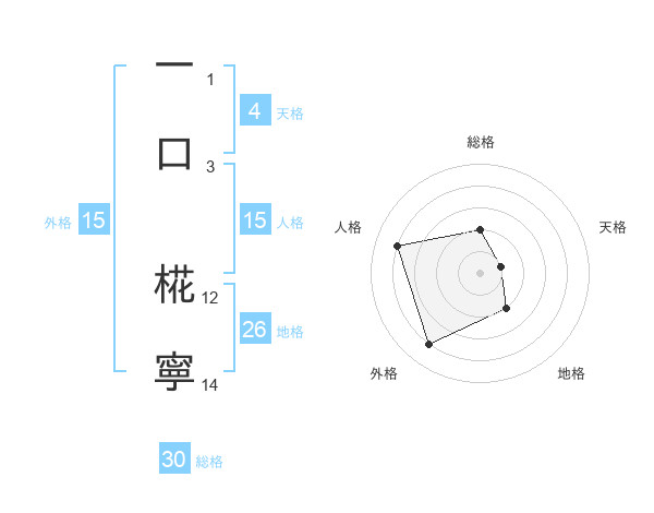 一口 椛寧さんの外格は15画の4点!
