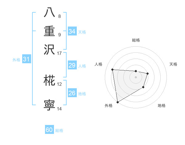 八重沢 椛寧さんの外格は31画の5点!