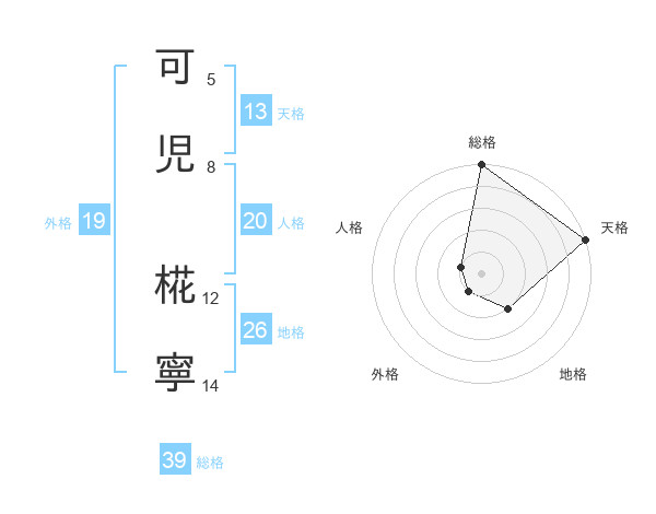 可児 椛寧さんの総格は39画の5点!