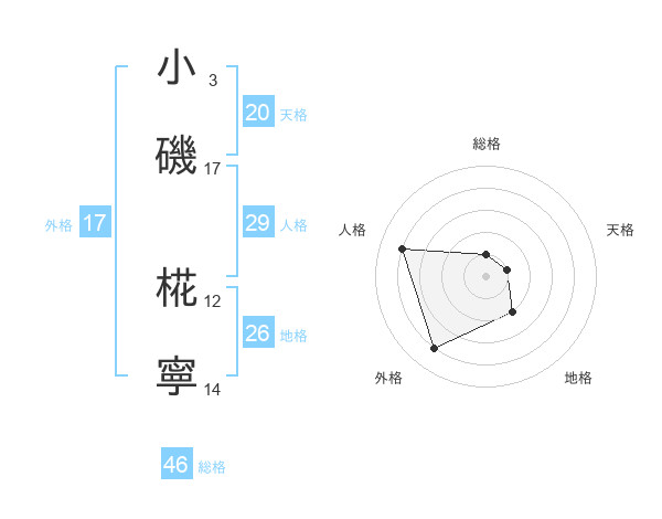 小磯 椛寧さんを姓名の画数から五運を鑑定