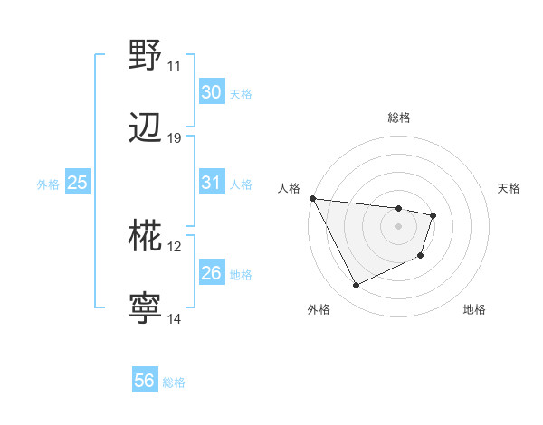 野辺 椛寧さんの天格は30画の2点!