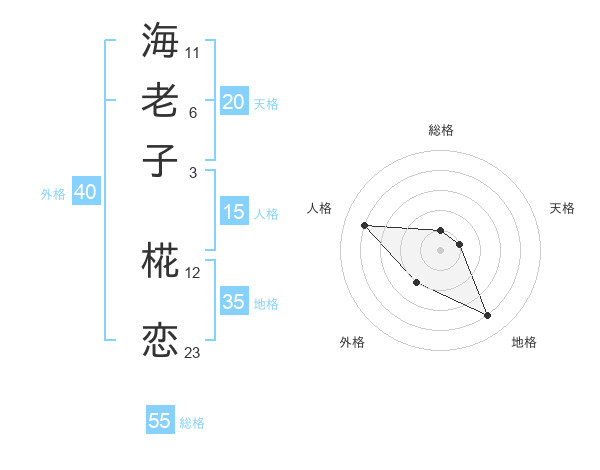 海老子 椛恋さんの総格は55画の1点!