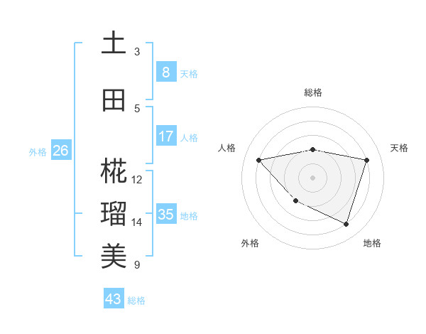 土田 椛瑠美さんを姓名の画数から五運を鑑定