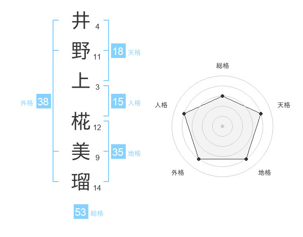 井野上 椛美瑠さんの総格は53画の3点!