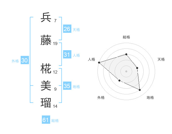 兵藤 椛美瑠さんの地格は35画の4点!