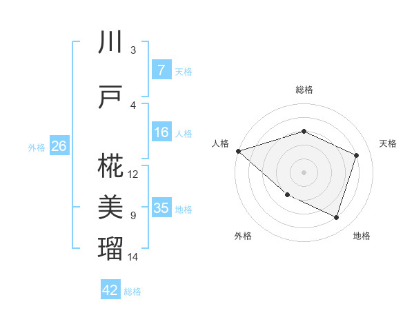 川戸 椛美瑠さんの地格は35画の4点