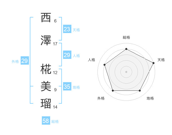 西澤 椛美瑠さんを姓名の画数から五運を鑑定