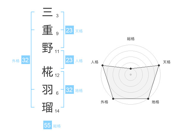 三重野 椛羽瑠さんを姓名の画数から五運を鑑定