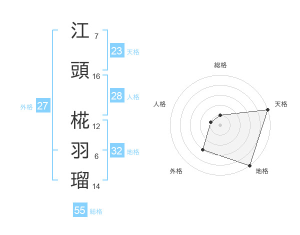 江頭 椛羽瑠さんを姓名の画数から五運を鑑定