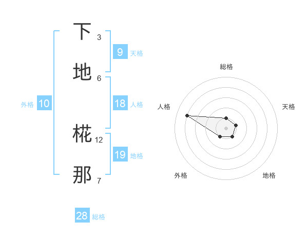 下地 椛那さんの総格は28画の1点!