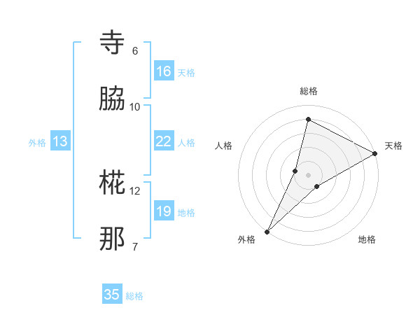 寺脇 椛那さんの外格は13画の5点!