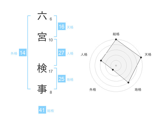 六宮 検事さんの総格は41画の5点!