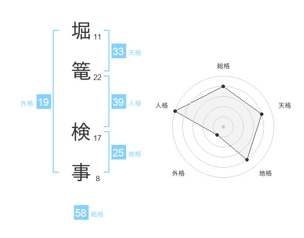 堀篭 検事さんの総格は58画の4点!