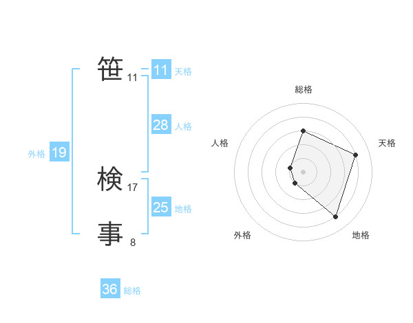 笹 検事さんの地格は25画の4点!