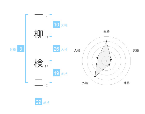 一柳 検二さんの総格は29画の4点!