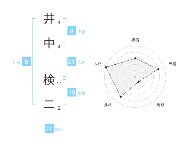 井中 検二さんの人格は21画の5点!