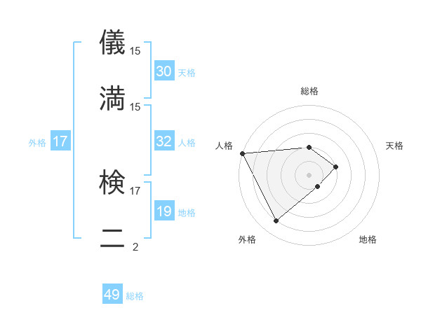 儀満 検二さんの外格は17画の4点!