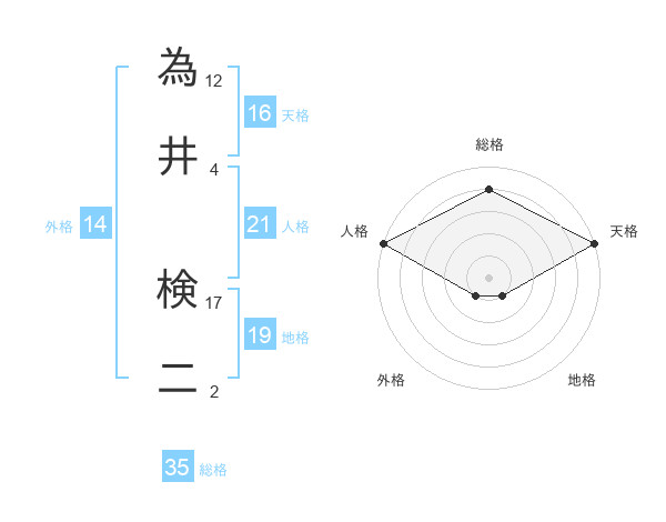 為井 検二さんの天格は16画の5点!