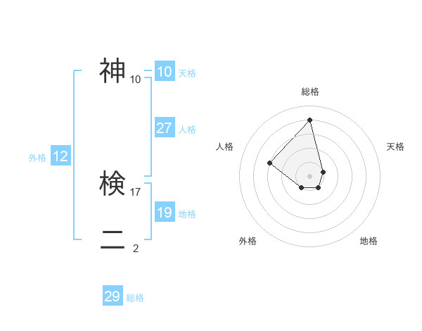 神 検二さんの総格は29画の4点!