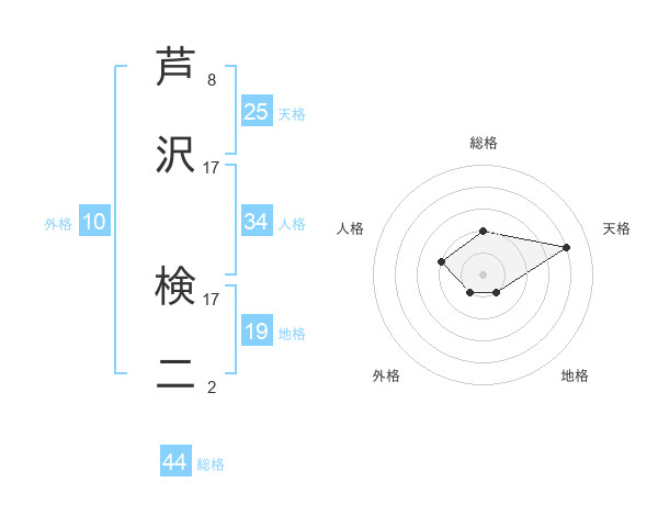 芦沢 検二さんの総格は44画の2点!