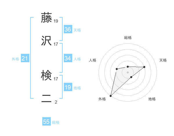 藤沢 検二さんを姓名の画数から五運を鑑定
