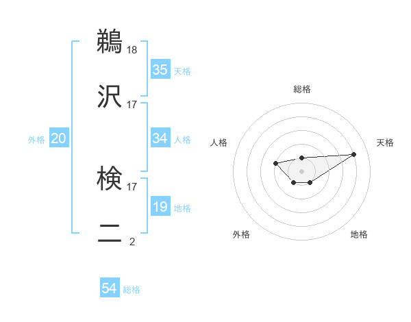 鵜沢 検二さんの総格は54画の1点!