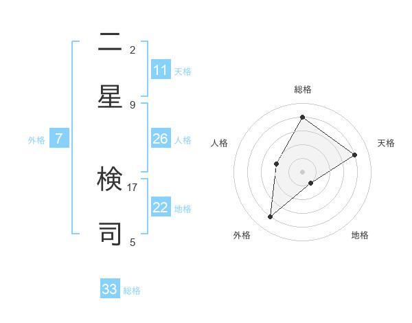 二星 検司さんの天格は11画の4点!