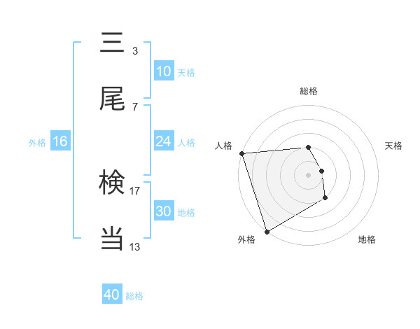 三尾 検当さんの総格は40画の2点!