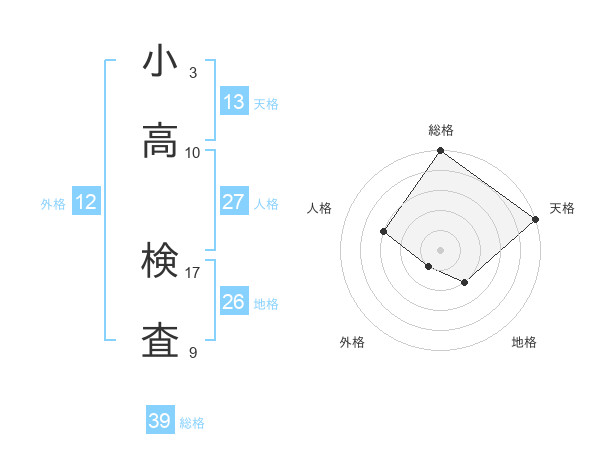 小高 検査さんの総格は39画の5点!