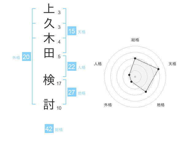 上久木田 検討さんを姓名の画数から五運を鑑定