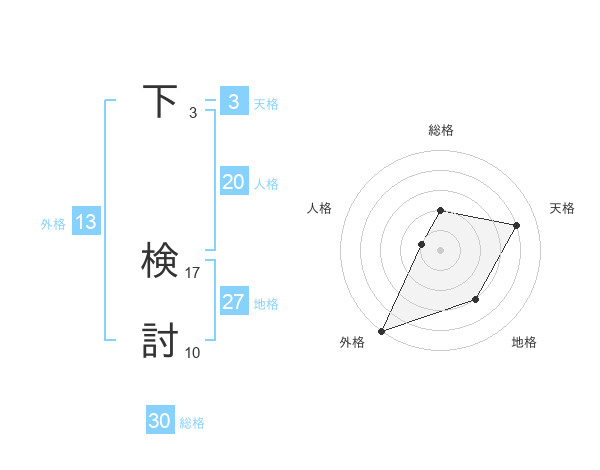 下 検討さんの外格は13画の5点!
