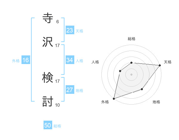 寺沢 検討さんの総格は50画の2点!
