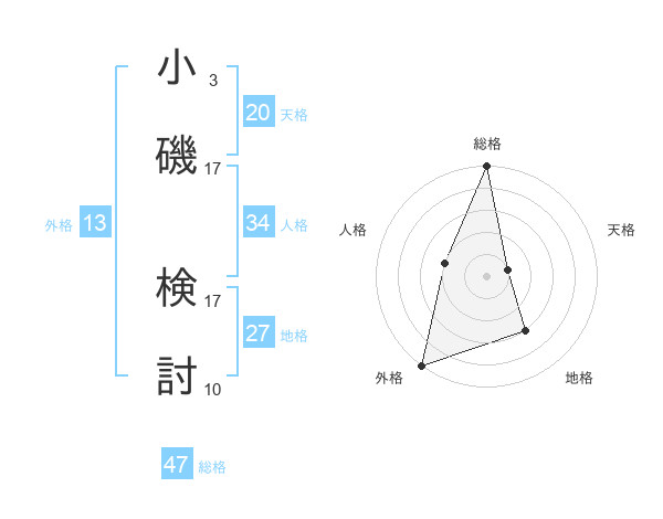 小磯 検討さんの総格は47画の5点!