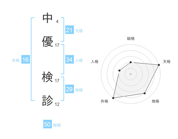 中優 検診さんの天格は21画の5点!