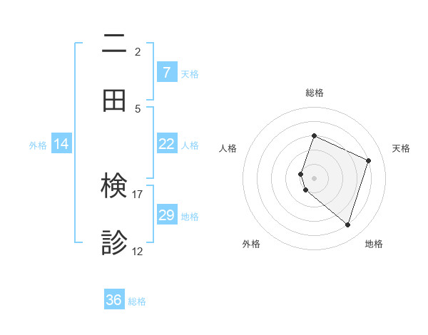 二田 検診さんを姓名の画数から五運を鑑定