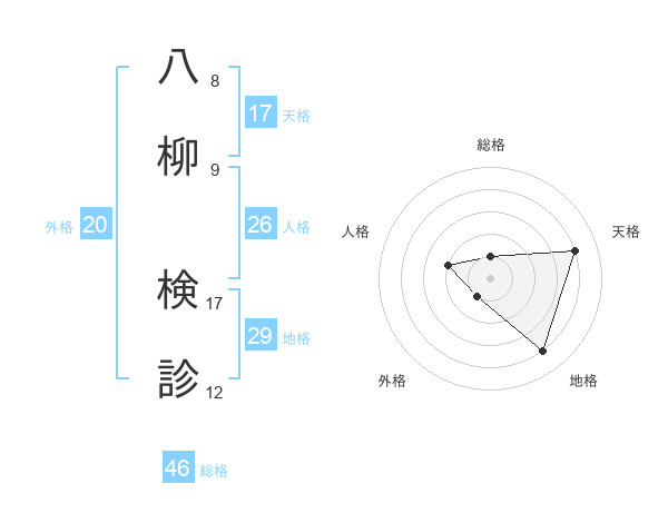 八柳 検診さんの天格は17画の4点!