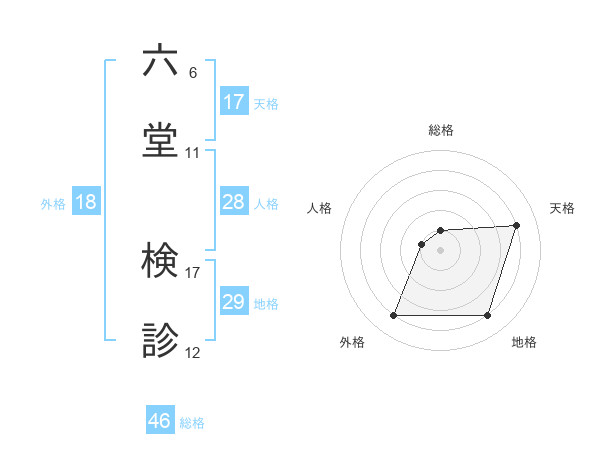 六堂 検診さんの総格は46画の1点!