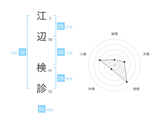 江辺 検診さんの総格は55画の1点!