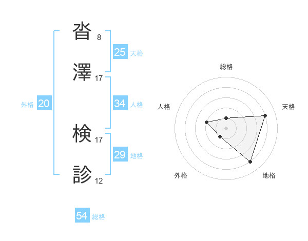 沓澤 検診さんを姓名の画数から五運を鑑定