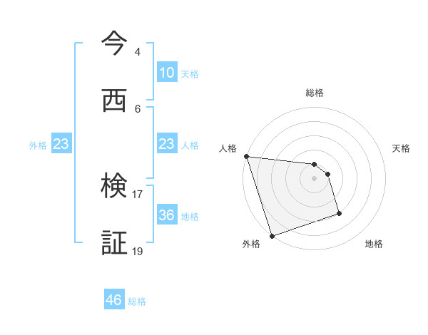 今西 検証さんの人格は23画の5点!