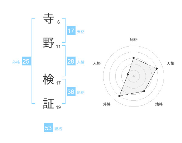 寺野 検証さんの天格は17画の4点!