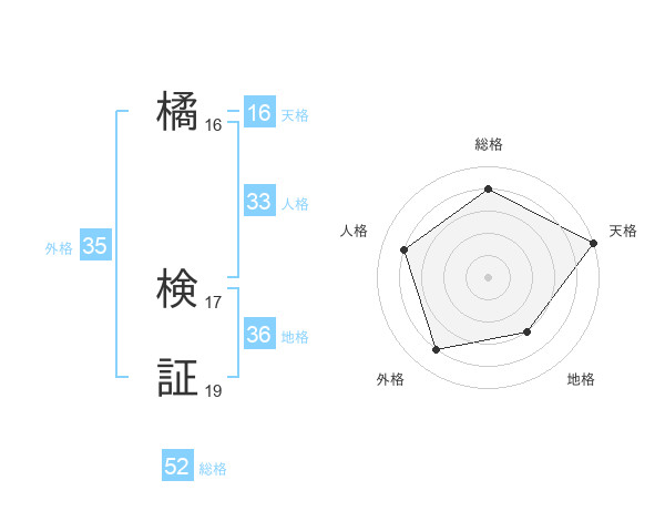 橘 検証さんの総格は52画の4点!