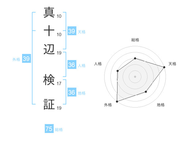 真十辺 検証さんの総格は75画の3点!