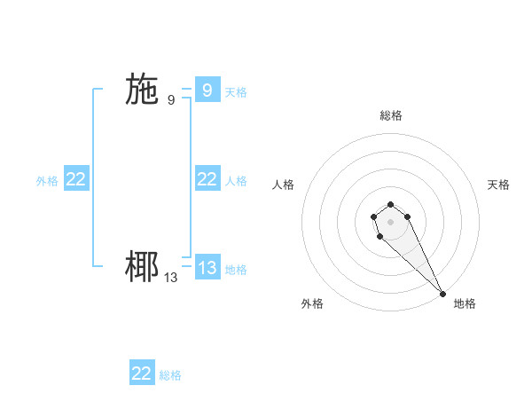 施 椰さんの総格は22画の1点!